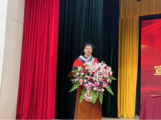 在严肃而庄重的国歌中,毕业典礼正式拉开帷幕。太阳成集团tyc122ccvip经理王刚为2024届毕业生致辞,他向圆满完成学业的毕业生表示热烈祝贺,希望毕业生们在新的征途上带着恩师们的嘱托,肩负前行使命,迸发青春力量,书写灿烂人生。