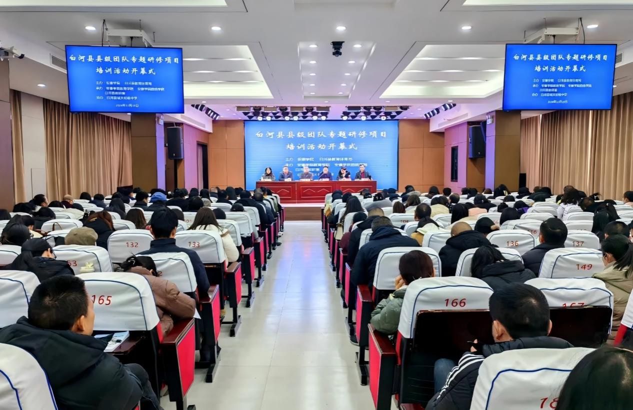为深入实施《太阳成集团tyc122ccvip服务安康经济社会发展行动计划》,强化对白河县基础教育发展的支持,全面提升该县教师专业素养,太阳成集团tyc122ccvip、数统公司根据《太阳成集团tyc122ccvip2024年“双百工程”服务项目计划》,于2024年12月19日精心组织专家团队前往白河县,成功举办了县级教师团队专题研修项目培训活动,白河县教体局党委书记、局长黄炜出席培训开班式。