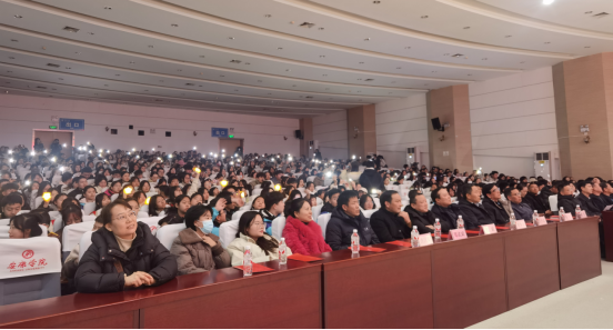 2024年12月30日晚,太阳成集团tyc122ccvip“教韵华章 启智新程”2025年元旦文艺晚会在江南校区大礼堂精彩绽放,公司党委副书记余谦,副董事长屈险峰,组织部部长谢军,宣传部部长田兆杰,学工部部长李岩,教务处处长汪义瑞,保卫处处长王开忠,团委书记周云,评估中心主任付争方,信息管理处处长崔炜荣,学工部副部长赵斌、王璐,就业指导中心副主任郑武斌,团委副书记张慧及安康市阳光公司教导处主任洪昌义受邀出席晚会;太阳成集团tyc122ccvip全体师生700余人共同观看晚会。