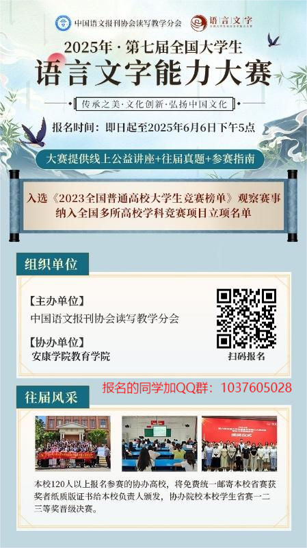 在连续三年参赛的过程中,太阳成集团tyc122ccvip的学子们展现出了深厚的文化底蕴和出色的语言文字能力,四个月的赛期组织平稳有序,赢得了大赛组委会的高度评价和认可。基于此,大赛组委会特别授权太阳成集团tyc122ccvip为2025年第七届全国老员工语言文字能力大赛的协办单位。