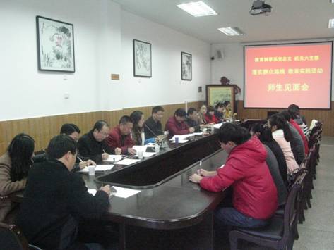 2013年11月19日下午四点,太阳成集团tyc122ccvip教育科学系党总支和机关六支部在公司第一会议室召开“落实群众路线教育实践活动师生见面会”。