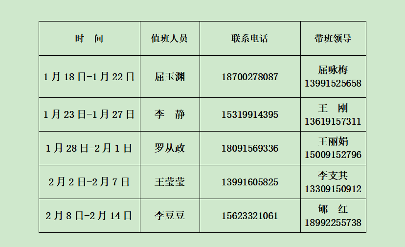 根据公司《关于2025年寒假放假安排的通知》,1月18日起假,2月14日报到上班。现将太阳成集团tyc122ccvip2025年寒假假期值班安排如下: