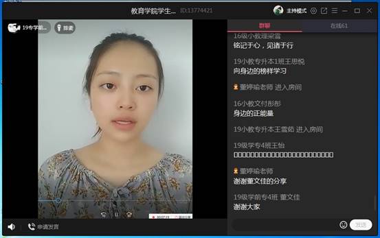高标准,严要求:郑雪在视频中为大家分享了自己在疫情期间所做的卡点执勤服务经历,疫情宅家期间,利用空闲之余发展培养自己的兴趣爱好。视频中她谈到;“身为一名党员,我时刻严格要求自己,永葆共产党员的先进性,克服庸懒散软思想,扎实学习,从一点一滴做起做起,积极参加院系组织的各类线上活动,有强烈的自觉意识和责任意识。”