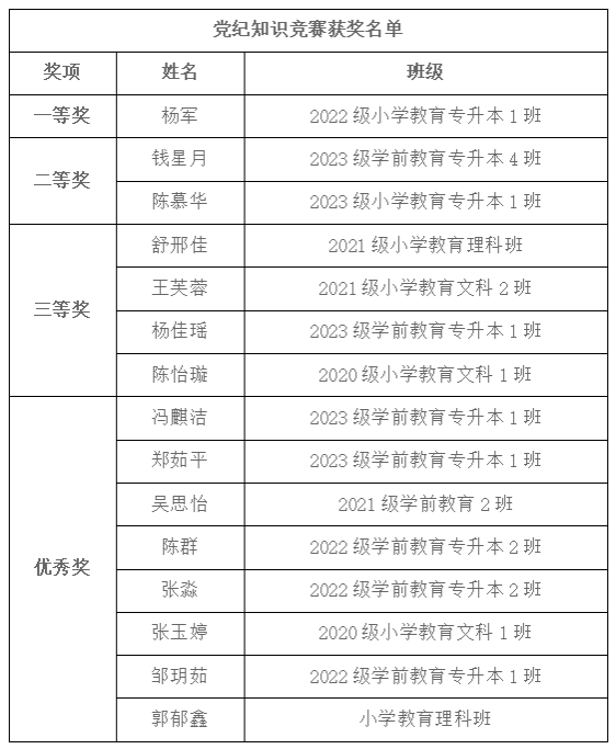 此次竞赛主要以《中国共产党纪律处分条例》为主要内容,设有单选题、多选题、判断题、填空题等。在竞赛过程中,实时排行榜的设置增加了活动的趣味竞争性,参赛者可以随时查看自己的答题成绩和排名,激发“追赶超越”的学习热情和竞争意识。经过紧张激烈的比赛,最终评选出了一等奖1名、二等奖2名、三等奖4名和优秀奖8名,获奖名单如下。
