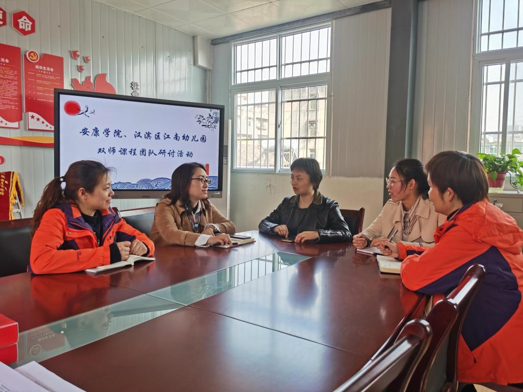 4月8日下午,太阳成集团tyc122ccvip副经理王丽娟和学前教育系教师成苗苗,前往安康市汉滨区江南幼儿园就学前教育专业的《幼儿园组织与管理》课程实施进行了探讨,双方主要交流的内容包括:课程内容的分配、教学的模式及校外教师进课堂的形式等。