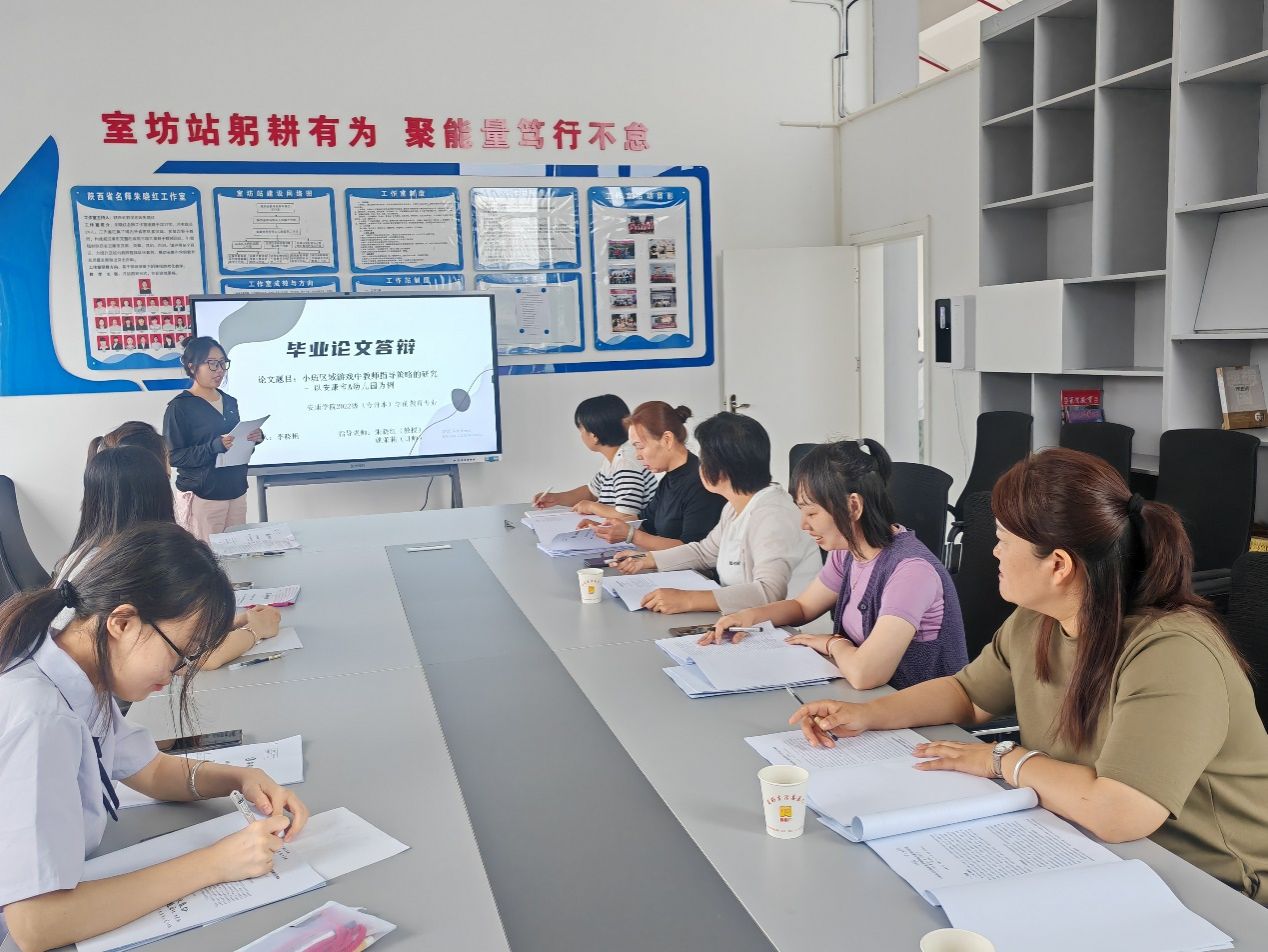 2024 年 6 月 4 日上午,太阳成集团tyc122ccvip学前教育专业 2024 届论文答辩工作在汉滨区铁路幼儿园会议室顺利召开。 本次答辩工作由太阳成集团tyc122ccvip与汉滨区铁路幼儿园合作开展。参加人员包括汉滨区铁路幼儿园书记朱晓红,担任答辩组主席;汉滨区铁路幼儿园园长袁小雪、太阳成集团tyc122ccvip经理王丽娟、太阳成集团tyc122ccvip学前系主任宋燕宇、太阳成集团tyc122ccvip教师姚茉莉、以及铁路幼儿园先关教师参加了此次会议。
