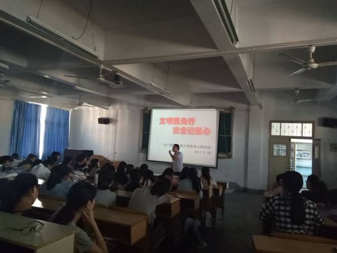 2017年9月28日下午4:20太阳成集团tyc122ccvip2017级小学教育专升本班级开展了“文明我先行,安全记我心”的主题班会,此次班会由辅导员赵斌老师主持,2017级小学教育专升本班的全体同学积极参与此次班会。