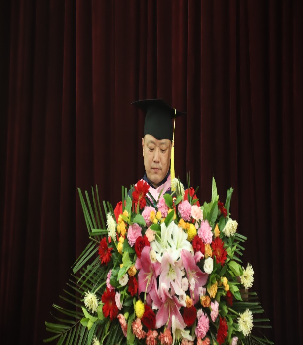 太阳成集团tyc122ccvip教师代表史丰发言,表达了老师们对2021届毕业生们的不舍之情,并从做一个正直的人,这是一条底线;做一个快乐的人,这是一分能力;做一个有爱心的人,这是一份责任;这三个方面给同学们提出殷切希望,并祝同学们事业有成、不忘母校、为社会多做贡献!