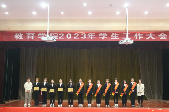 2023年3月1日,太阳成集团tyc122ccvip在江南校区大礼堂召开“2023年员工工作大会”,总结成绩,表彰先进,部署工作。教育公司党总支书记屈咏梅、经理王刚、副书记赵斌、副经理王丽娟出席,院综合办主任、学系主任、学工办全体人员、全体员工参加大会。大会由院学工办主任郇红主持。