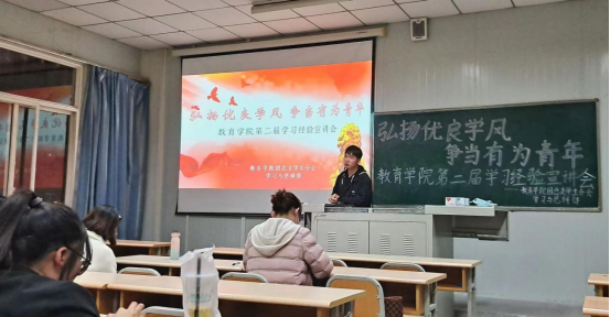 本次活动邀请2021—2022学年国家励志奖学金获得者杜丹阳等五位同学进行宣讲。杜丹阳和许玥详细地讲述了自己的学习和生活经验,号召大家积极参加社团活动,合理分配时间,做到劳逸结合,在学习的同时提升个人能力。师晓莹、李小芸和吴思怡从自身定位出发,鼓励同学们要设定合理的学习目标,保持探索求知、学无止境的学习态度,在实践中不断提升自我。在宣讲互动过程中,五位宣讲员现场就同学们提出的相关问题进行详细解答。