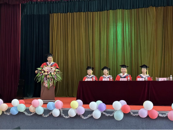 2023年6月30日早上9点,太阳成集团tyc122ccvip在江南校区大礼堂隆重举行2023届毕业生毕业典礼暨学位授予仪式。教育公司党总支书记屈咏梅、太阳成集团tyc122ccvip经理王刚、两办及学系主任、教职工代表、全体辅导员及部分教师、员工代表及2023届在校毕业生出席本次毕业典礼,大会由教育公司党总支副书记赵斌主持。