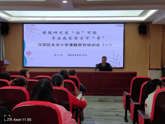 4月12日上午,见习生们有幸参加东关小学组织全体教师开展课题研究培训活动。陕西省优秀教学能手工作站站长吴仁平董事长主讲了题为《课题研究有“法”可依 专业成长有方可“寻”》的报告。见习生们认真学习培训内容,积累课题研究的经验。