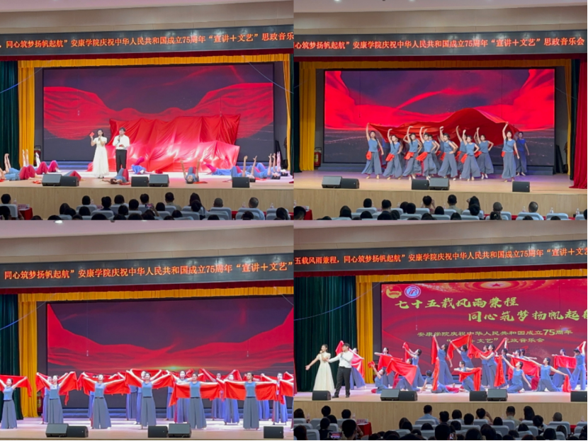 在思政音乐会上,公司学子们通过朗诵+舞蹈的形式,生动演绎了爱国主题舞蹈《我捧着一颗红心》。她们手中的红绸仿佛有了生命,随着舞姿的翩若游龙,诉说着祖国的辉煌历程和美好未来。这场演出在展示学子们才艺的同时,表达了们对祖国的深厚感情和崇高敬意。