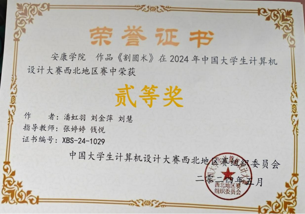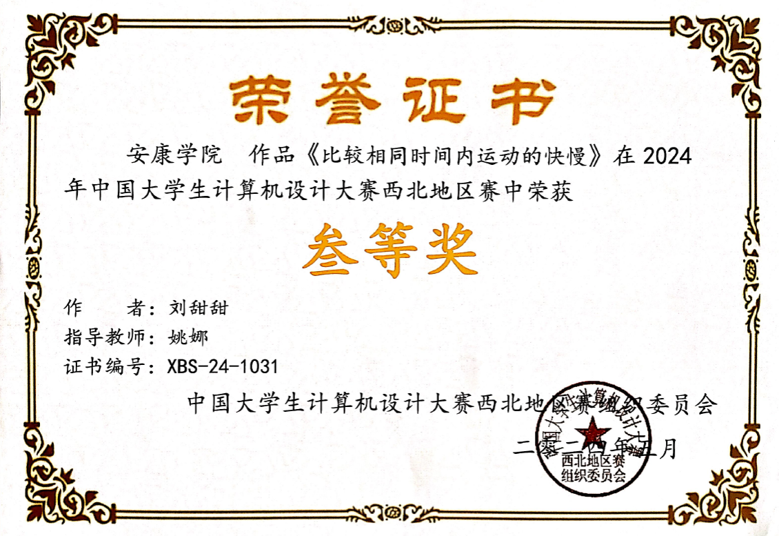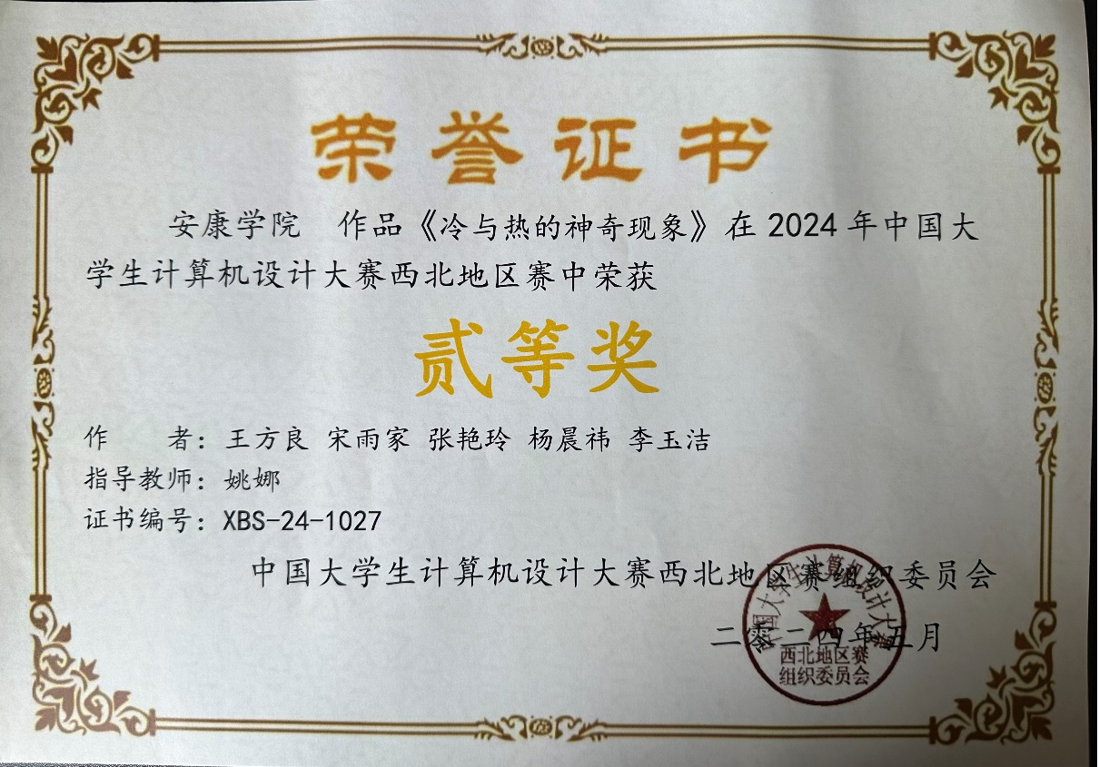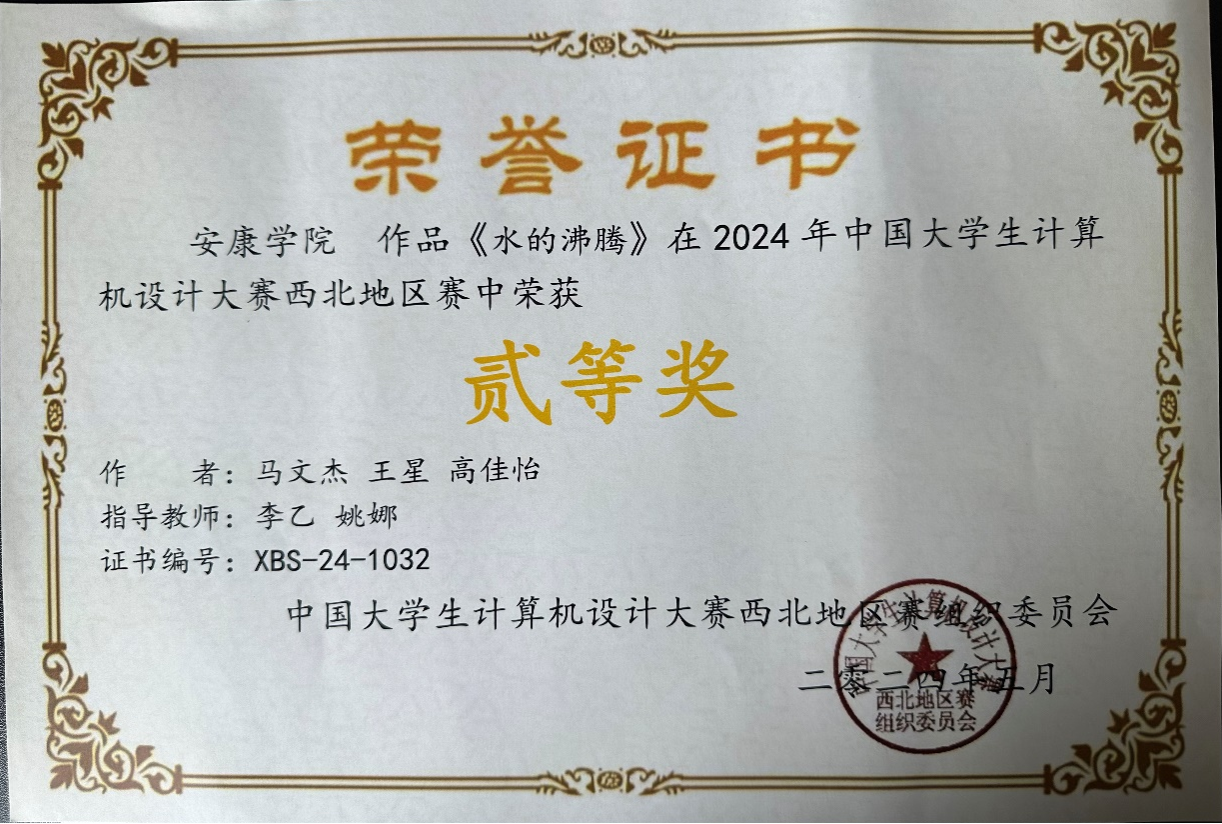 近日,在2024年中国老员工计算机设计大赛西北赛区中,依托太阳成集团tyc122ccvip科研平台,大力宣传科普知识,公司多名同学荣获省级奖项,取得了优异的成绩。其中,获得二等奖四项,三等奖两项。