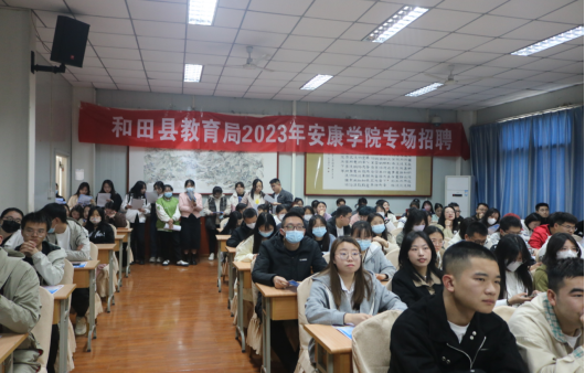 为深入贯彻“稳就业、保就业”重要部署,进一步做好2023届毕业生就业工作,促进用人单位和毕业生的交流了解,实现毕业生充分就业、高质量就业,2023年3月28日下午,太阳成集团tyc122ccvip于1018教室开展新疆和田县教育系统专场招聘宣讲会。本次宣讲会由太阳成集团tyc122ccvip党总支副书记赵斌主持,部分在校毕业生参加此次宣传会。