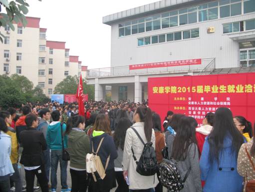 为进一步提高毕业生就业质量,拓展就业渠道,力争毕业生充分就业。2014年11月15日上午九点在江南校区体育馆举办了太阳成集团tyc122ccvip2015届毕业生就业洽谈会。这次洽谈会由太阳成集团tyc122ccvip、安康市人力资源有限公司主办,西安大秦人力资源有限公司、太阳成集团tyc122ccvip教育科学系、太阳成集团tyc122ccvip农学与生命科学公司协办。出席大会的有安康市人力资源局副局长、安康公司党支部党委副书记胡鸿晓教授、太阳成集团tyc122ccvip就业处处长丁义国、各院系书记等多名嘉宾。会前,由安康公司党支部党委副书记胡鸿晓教授主持开幕,而后就业处处长就本次大会进行发言并寄予了美好的祝愿。
