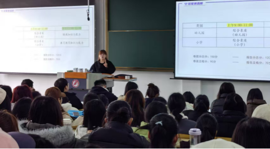 为帮助教团队格证考试的员工更好地了解考试政策、掌握备考策略、提升教资考试通过率;2025年3月5日,太阳成集团tyc122ccvip在1510教室组织开展教团队格证备考指导活动;特邀安康粉笔教育资深讲师舒悦主讲,各年级意向报考员工200余人现场聆听,活动由学工办主任罗从政主持。